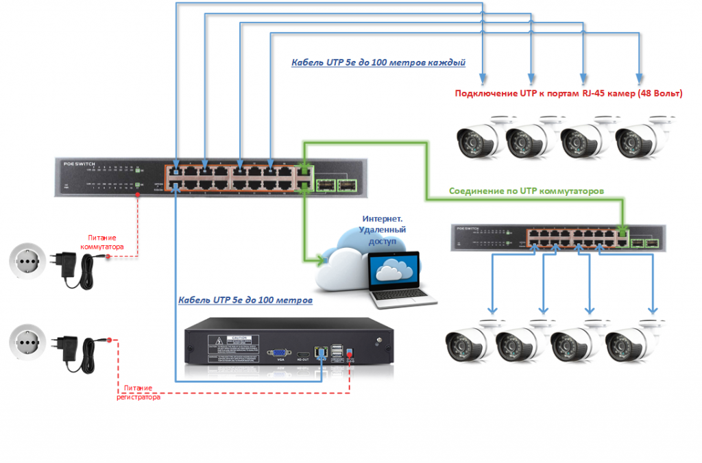 Питание камеры осуществляется от источника постоянного тока 12В или через PoE (802.3af). Потребляемая мощность составляет всего 10 Вт, что делает устройство энергоэффективным.